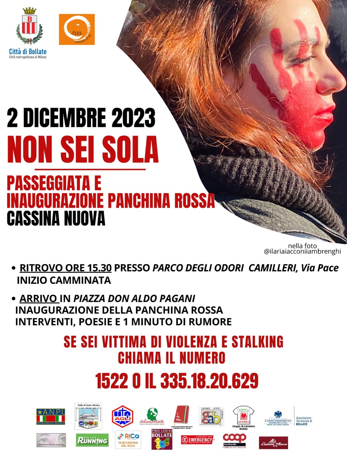 Sabato 2 dicembre alle 15.30 sarà inaugurata una nuova panchina rossa nella nostra città. Il circolo ACLI “Don Franco Fusetti” e “Italianamente” sostengono con convinzione l’opera di sensibilizzazione che il Comune sta portando avanti da anni sul tema della violenza contro le donne. Troviamoci tutti insieme per dire no a qualsiasi forma di violenza (psicologica, fisica, economica ecc.) contro le donne!