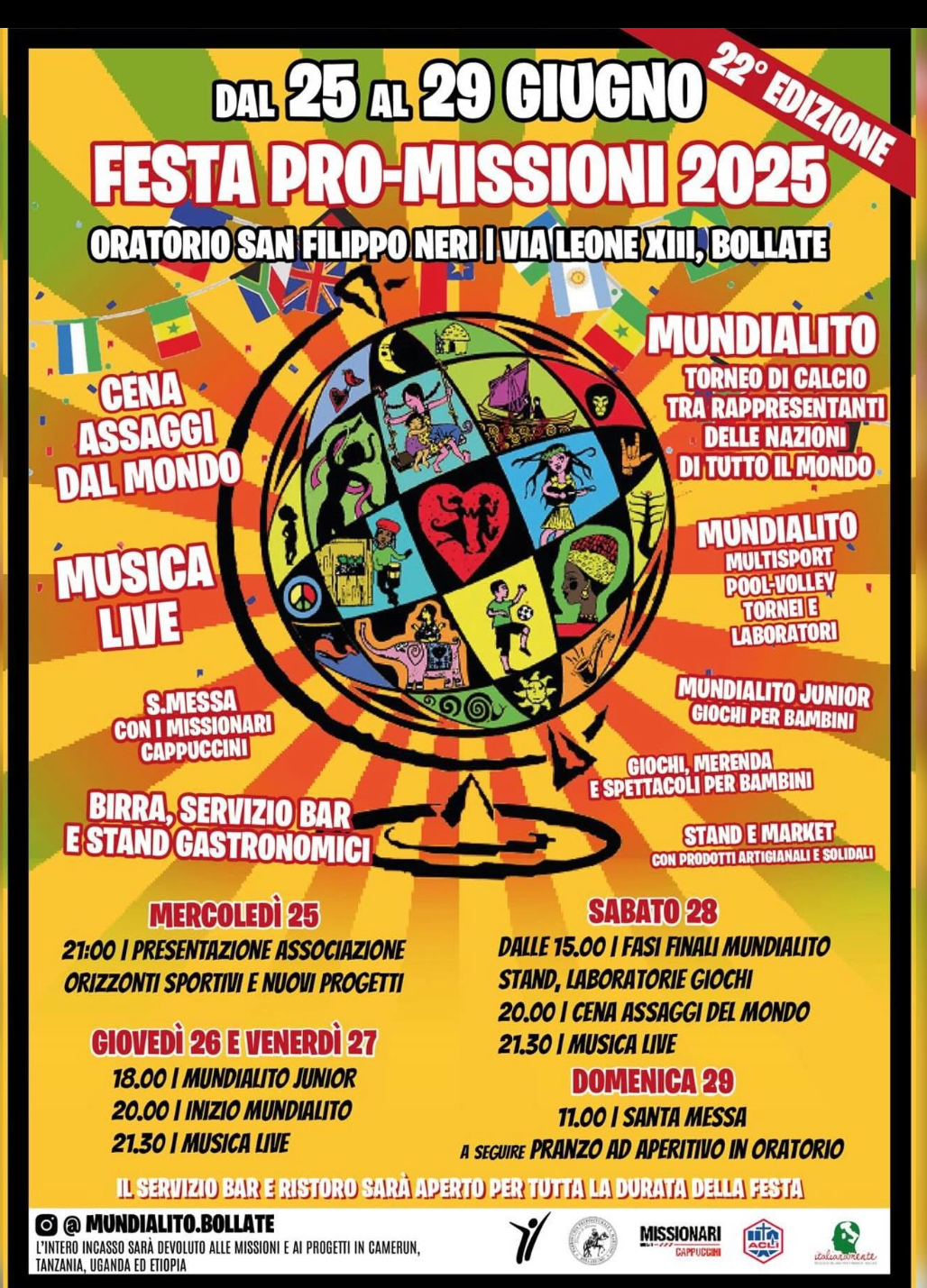 Anche quest’anno il circolo ACLI di Bollate e la sua scuola di italiano per migranti “Italianamente” sostengono la Festa Pro Missioni e il mundialito, una reale esperienza di integrazione e arricchimento culturale.