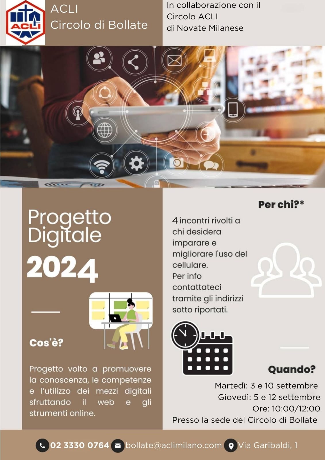 Si è concluso con un buon numero di partecipanti soddisfatti il progetto volto a promuovere la conoscenza, le competenze e l’utilizzo dei mezzi digitali pensato per le persone “diversamente giovani” . Formatrice dei quattro incontri – svoltisi martedì 3 e 10 settembre e giovedì 5 e 12 settembre 2024 dalle 10 alle 12 presso la sede del circolo ACLI di Bollate in via Garibaldi 1 – è stata Jasmine, alla quale va un sentito ringraziamento.